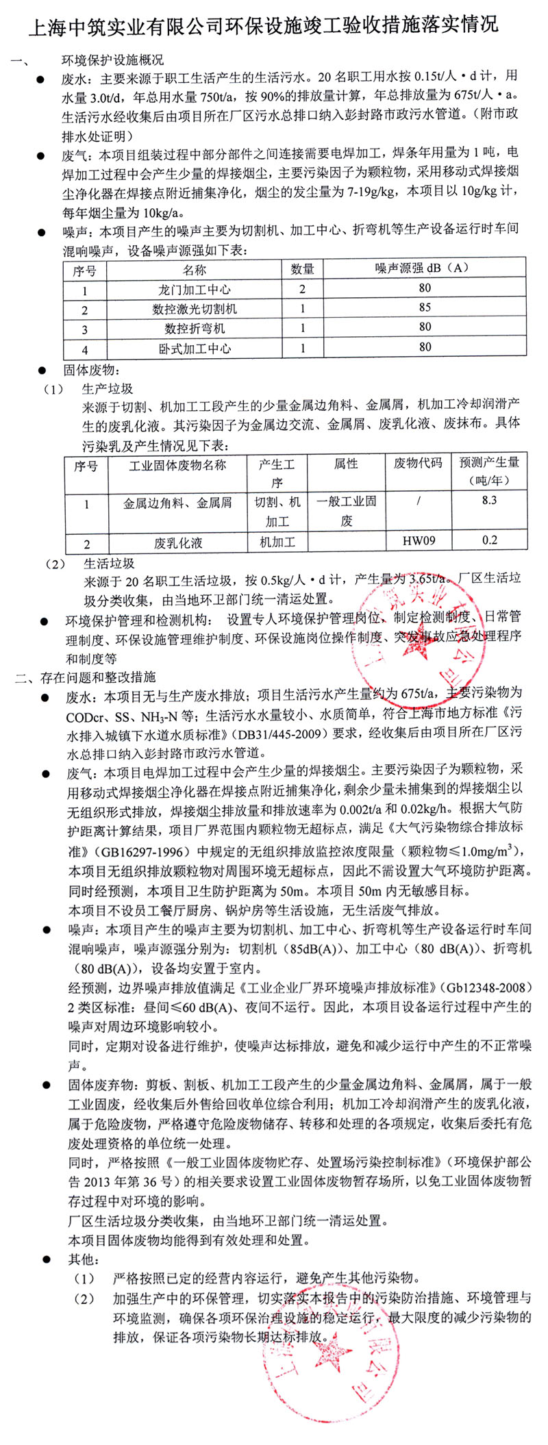 Implementation of Completion Acceptance Measures for Environmental Protection Facilities of Shanghai Zhongzhu Industrial Co., Ltd